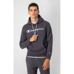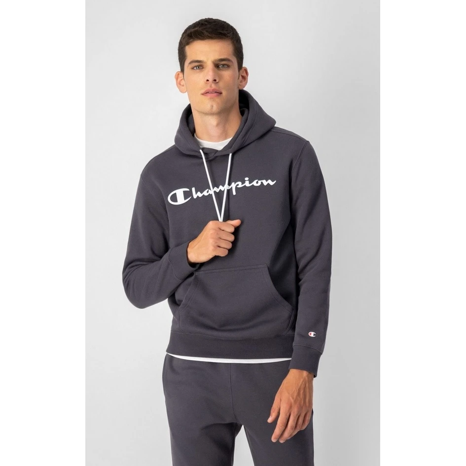 Champion Kapuzenpullover (Hoodie) Aus Baumwollfleece Big Logo Print Dunkelgrau/weiss Herren